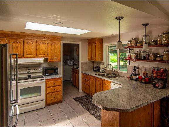 Completely remodeled 4b/2b manufactured home. Home features both wood and electric heat. Laminate and tile flooring throughout. Recessed lighting. Great drilled well (50 GPM). Huge organic garden and orchard with established strawberries, raspberries, apples, pears and blueberry bushes. Fire pit for wonderful evening marshmallow roasts or gathering of friends. 3 carports.. Garden shed & wood shed. Outside house that can be used for dogs, goats, chickens, each with separate quarters and dog runs fenced.. Nice covered deck.