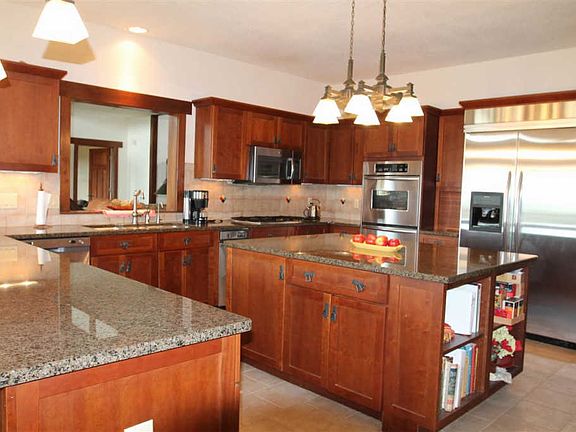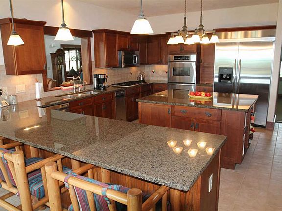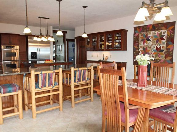 A property like this only comes along once in a blue moon! The home reflects quality craftsmanship and unique features! Circle drive accented by stamped patio and impressive over-size wooden door to foyer. Gourmet kitchen designed to entertain - large center island for food prep and storage, ample eat-at counter space, quality appliances and many special touches! Formal dining room with china closet. Spacious pantry. Great room features floor-to-ceiling wood burning fireplace that is over 25 feet tall. Porcelain tile throughout great room, kitchen, entry, laundry and mudroom. Welcoming foyer with open stairs, stain glass fixture and large shelf display areas. Pleasant dedicated office space with built in shelving and window seats captures the natural light. Main floor master designed for comfort and relaxation. Laundry room with additional cabinets and counter space, guest bed and bath and mudroom on main. Upstairs you will find an 'Alice in Wonderland' themed bedroom that is absolutely charming and will be sure to capture the imagination of guests. Another bedroom, full bathroom with double sinks and additional storage space complete the upper level. Full walk-out basement with geo-thermal heat system is ready for your personal touch. Attached three-car garage. Well-built horse barn with many extras and the steel utility shed together provide an additional 6,894 square feet of work, storage and animal quarters space. Truly a quality horse property - with a riding corral in place! Qualified buyers only!