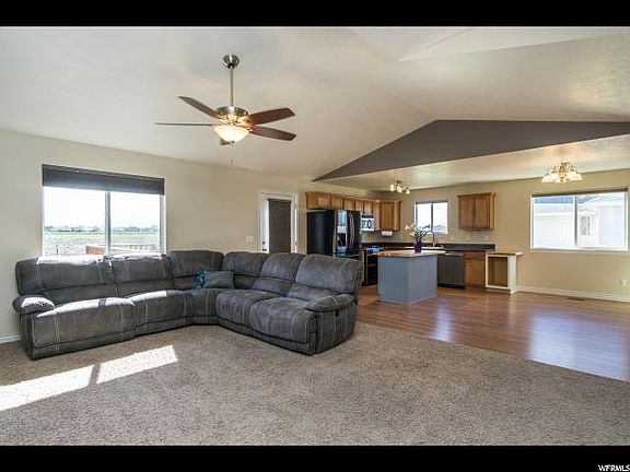 Beautiful West facing rambler located in a great neighborhood! Enjoy no backyard neighbors, a bright and open layout with a large great room, custom paint, vaulted ceilings, spacious bedrooms on each level, big master bedroom with barn door, walk-in closet and large shower, main floor laundry with storage, newly finished daylight and walkout basement with LVT flooring and an over-sized bathroom, custom tilework in showers, big fully fenced backyard, large deck and amazing views of the mountains! All appliances stay, including the washer and dryer! Sq. footage per tax data; Buyer to verify all information.