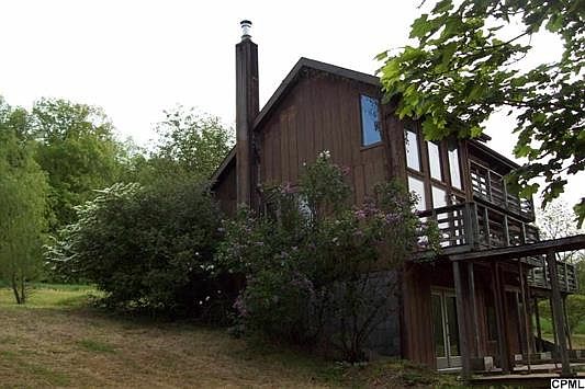 Privacy on five acres with beautiful mountain view. Contemporary style design features 2.5 story great room, window wall overlooking mountain view, large country kitchen, 3 bedrooms, 2 full baths and finished lower level with large family and additional bedroom/office. Wrap around deck, private balcony off 2nd fl, detached over sized 2 car garage. Ready for a new owner to call it home. This is a Fannie Mae Home Path Property.