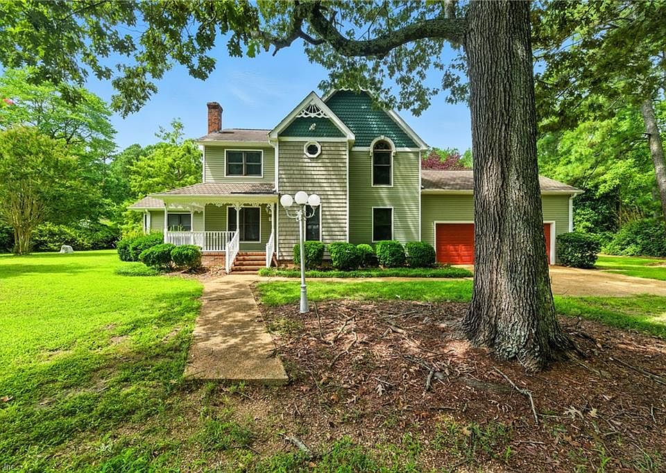 Located just minutes from Yorktown and Williamsburg, this custom home offers a beautifully crafted kitchen with abundant cabinetry, pantry, and built-in bar stools, dining table, and hutch—all with under/in-cabinet lighting. Enjoy a cozy gas fireplace in the living room and a spacious sunroom with views of a running pond, deck, and gazebo. Includes a 1st-floor bedroom/office and a luxurious primary suite with heated floors, walk-in shower, soaking tub, two walk-in closets, and flex space for an office, gym, or den—with private garage access. Features a 2-car attached garage, detached oversized garage/workshop, whole-house generator, central vac, and a utility room with sink and storage. A perfect retreat not far from history and modern amenities.
