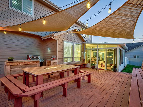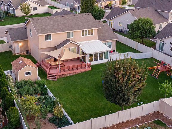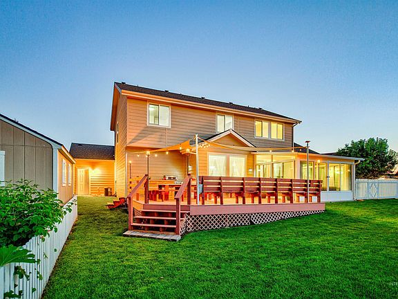 Don't miss this home with so much space!! 6 bedrooms, could be 5 + office/den, 4 bathrooms & two living spaces plus a sunroom - works well for multi-generational living! Open concept living spaces offer high ceilings & new LVP flooring in the spacious kitchen and dining areas, with an oversized pantry. Outside you'll find a gorgeous back yard on just over 1/3 acre. It has an impressive garden area with raised garden beds offering corn, tomatoes, melons, zucchini, peach, apple, pear trees & more! Quiet neighborhood allows for relaxing evenings on the extensive custom deck with solar string lights, built-in seating, dining table with fire feature & space for BBQ. Sunroom space is lovely, adding room to entertain or play - or fill with your plants for a retreat area! Large dog run area off west side keeps dogs and people separated when needed. 4th garage bay currently used as a workshop space, potential for RV parking - this one has so much to offer!