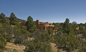 Magnificent estate is on five acres amongst tall Ponderosas located just past the entrance to Wilderness Gate. This expansive 3 to 4 bedroom adobe home has grand spacious rooms accented with warm finishes creating a lovely home environment. The exquisite formal dining room features a Mediterranean dome brick Boveda style ceiling. Additional features are aged multi hued oak floors, plaster walls throughout. Nine fireplaces (grand shepherd's' style in living room), bancos and wonderful architectural details. Fully super charming, self contained, one bedroom guest house with kitchen. Plus incredible city lights and sunset views!