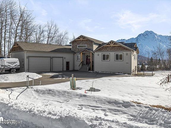 Beautiful raised ranch home situated on 2 lots totaling 1.82 acres in Palmer off the Springer system. Boasting AMAZING mountain & river views, tucked into a quiet cul-de-sac w/ access trail right down to the river! All the upgrades on your wish list to include some extras like a dog washing station in the laundry and an amazing daylight basement mother in law apartment with room to expand!! ......~Two lots at .92 acres each with a shared well agreement ~Upgraded cabinets & granite counters in both kitchens ~Main Kitchen with live edge island with mounted bar stools ~Stainless steel appliances to include double oven and gas cook top ~Paved parking to include plenty of extra room for an RV or Trailer ~Separate entrance and parking for mother in law apartment ~Beautiful fully fenced rear yard and separate pet area ~Attached Large 3+car garage totaling 877 square feet ~RV Parking next to paved parking pad and driveway ~Partially covered Trex Upper Deck with amazing views ~Paved drive/walkway to lower 752 sq ft apartment-Pavers to separate entrance. ~ Unfinished area in basement available for future approx 1400+ square feet in apartment or find a way to connect it to the main living space with stairs! ***Unfinished square footage is approximate and not included in total square footage in listing*** Buyer to verify all information