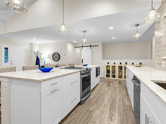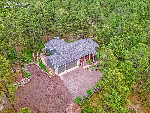 SEE VIDEO TOUR! Welcome to this fully renovated Black Forest home nestled on nearly 3 acres of heaven with trees plus open areas of lawn & lush landscaping * Massive curb appeal w/ charm, space & modern style on a gorgeous lot * Meticulous thoughtful updates make this home truly one of a kind * Wide, welcoming front entrace with a covered porch, new custom metal railing and tongue & groove ceiling * Step inside to find a bright, inviting space with a JAWDROPPING new kitchen & high end updates at every turn * Open kitchen with miles of new quartz countertops, ample prep space, and new luxury cabinets, stainless steel appliances, sink and hardware * Adjacent open dining area with vaulted ceiling * Stone fireplace in the living room with a wall of charming built-in display shelves * The laundry-mudroom combo is swoon-worthy with a built-in DOG WASH STATION * The WALKOUT basement has 2 additional bedrooms, a home office or gym, a 3/4 bath, plus a faming area and a family room with lareg WET BAR * Oversized 3 car garage includes (2) 600lb electronic lifts and custom shelving * Outdoor living spaces are just as impressive with a large wraparound deck, sandstone walkways, flagstone patio, and bubbling bounders to enjoy from the front & back sitting areas * Fully fenced in back, with raised garden beds, a greenhouse, an irrigation system, and over 50 trees and shrubs - truly a gardener’s paradise * stroll past bubbling boulders and wildflowers, or relax under the pergola-covered garden enclosure * New roof, new paint, gutter covers, skylights, and resurfaced driveway with recycled asphalt * All-new cabinetry, windows, electrical, plumbing, and flooring throughout * Come experience the peaceful country lifestyle you’ve been dreaming of, just a short drive from town, and a world away without being isolated * This is horse-approved neighborhood featuring 2 ponds, 80+ acres of open space, and scenic walking & riding trails for you to ride and roam freely * Move in and enjoy!