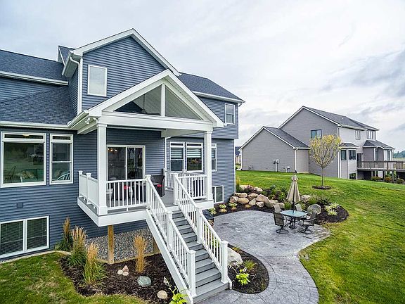 Gorgeous custom built Wannemacher home only a few months old. Owners have upgraded and decked out every aspect of this home; professionally landscaped, stamped concrete walkway, porch, and rear patio, covered deck off of the kitchen. This house has been thoughtfully planned and brilliantly executed. As soon as you step in the front door and see the barn door leading to the office you'll know this house is perfect. Just past the stairs you will not believe the views of the pond and trees behind the house. You can enjoy those views with your morning coffee from the sun porch, close the barn door for some added privacy. Don't let those gorgeous views distract you from the built-ins on either side of the shiplap fireplace. The unbelievable kitchen includes an extra long granite island, grey subway tile backsplash, impeccable black stainless appliances, including backless gas oven perfect for all your gourmet meals and also gorgeous lighting. Separating the kitchen from the garage is the family drop zone; half bath, mudroom with lockers, cubbies, and storage, and laundry room with folding counter. Upstairs you will find an expansive loft area with built in window seats as well as 4 bedrooms. The master bedroom and bathroom have all the amenities you've been looking for and the special touches you want; custom tile shower with half glass wall, separate stool room, dual vanity, and giant linen closet. Don't miss the shiplap in the tray ceiling!! Move into a brand new home without the additional expenses incurred out of pocket and get everything you want!!
