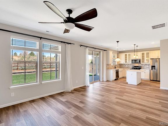 Welcome home to this stunning gem in the heart of Arvada w/ Ralston Valley schools! Private location with southern front exposure and large covered patio w/ very usable yard and views off to the northwest. Fabulous kitchen includes white cabinets, quartz countertops, custom backsplash, stainless steel appliances, large island w/ pendants, and great open floor plan. The main floor includes expansive hardwood floors, cozy family room with a gas fireplace, powder bathroom, and plenty of natural light. Relax in your generous sized master bedroom w/ 5 piece master bathroom and large walk-in closet. Complete with a perfect sized upstairs loft, two additional bedrooms with large full bath and oversized laundry room. Home includes full warranties and is move-in ready!