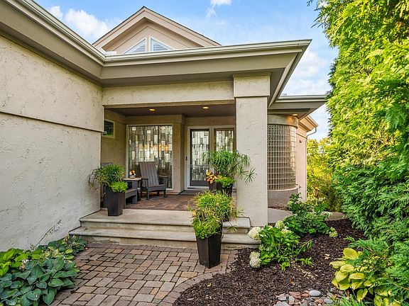 Immerse yourself in the elegance and splendor of Lower Prior Lake at Pixie Point. This home, poised on a bluff, delivers some of the most breathtaking lake views you'll encounter. The walkout rambler layout presents convenient single-story living, with vibrant spaces characterized by lofty ceilings and abundant natural light. The property boasts unique architectural details including rounded corners, stained glass, and bespoke lighting fixtures, imparting a sense of opulence paired with homely comfort. With about 90 feet of exclusive, private waterfront, an enviable location, and low exterior maintenance needs, this residence stands out as truly unique. Experience lakefront luxury at its finest in this exceptional home.