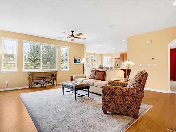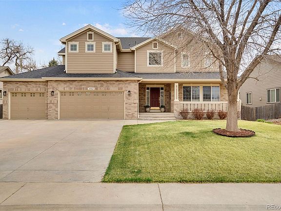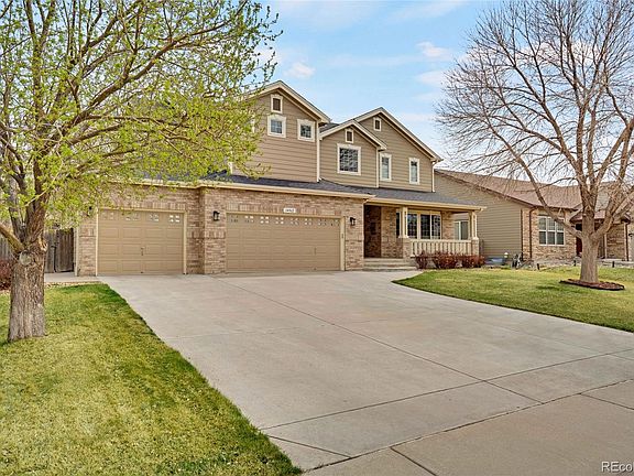 **IMPECCABLE PRIDE IN OWNERSHIP!** This extraordinary 5-bedroom, 5-bathroom home is a true gem, having been meticulously cared for by its original owners! Move right in and enjoy the peace of mind, knowing every detail has been thoughtfully maintained, including NEWER WINDOWS throughout the entire home! This stunning two-story home features a FINISHED BASEMENT, a sprawling backyard, and every detail designed for both comfort and style. The main level offers an open, airy floor plan, showcasing beautiful HARDWOOD FLOORS, vaulted ceilings, and a striking DOUBLE-SIDED FIREPLACE. A private office, two spacious living areas, and a dining area flow seamlessly into your dream kitchen. The over-sized eat-in island, GRANITE COUNTER-TOPS, stainless steel appliances, and breakfast alcove provide the perfect space for entertaining and daily living. You will be drawn outside to your 0.3-acre oasis—a LAVISH BACKYARD with a large patio, ideal for hosting or simply enjoying Colorado’s beautiful outdoors. Upstairs, the owner's suite is a private retreat, with a vaulted ceiling, CUSTOM LUXURY PAINT, an over-sized walk-in closet, and a 5-piece SPA-LIKE BATHROOM. Additionally, the second level includes three generously-sized bedrooms, one with a private en-suite bathroom, and a large, open loft. The finished basement adds even more to this home, offering a bonus room, a fifth bedroom, a custom-tiled bathroom, and an additional kitchen—a RARE AND VALUABLE FEATURE for guests, multi-generational living, or entertaining. The finished and HEATED 4-CAR GARAGE offers ample storage space, a vacuum system, large workbench, storage cabinets, and easy access to the backyard. Set in a serene CUL-DE-SAC with breathtaking MOUNTAIN VIEWS and backing to open space, this home is within the Adams 12 Five Star School District and only minutes from Orchard Town Center and the Denver Outlets. A truly exceptional property that offers both luxury and functionality. **DON'T MISS THE CHANCE TO MAKE IT YOURS!**