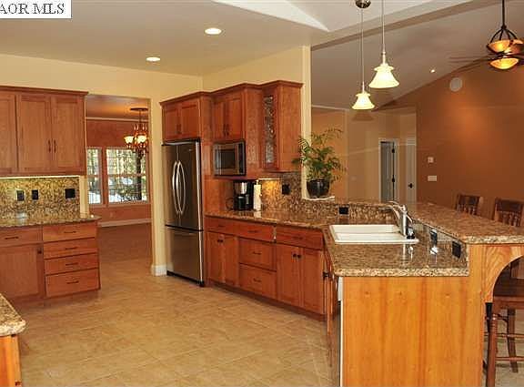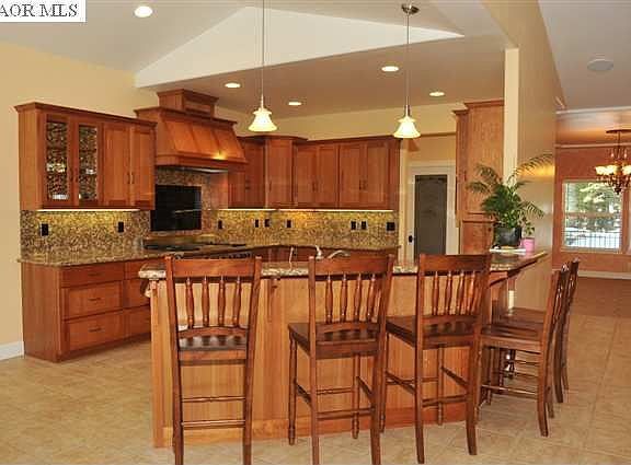 Elegant Craftsman style mountain home with filtered easterly views. Home sits off the road down a long meandering, circular driveway lined with street lights. Covered front porch, large back deck with built-in BBQ. RV parking, room for boat and all your toys, nicely landscaped & cleared to let the sunlight in. Open floor plan with vaulted & coffered ceilings, skylights and arched windows. Office, formal dining, chefs kitchen with gas Wolf Stove, cherry cabinets, granite countertops, walk-in pantry, large breakfast bar and breakfast nook. Spacious master suite with access out to back deck, walk-in closet, glass walk-in shower & claw foot tub. Guest bedrooms share a Jack & Jill bathroom. Great home to entertain or just relax.