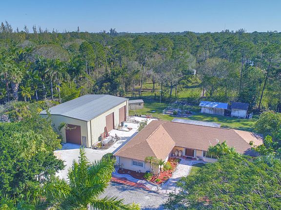 Great opportunity to own a spacious 3 bedroom home on 2 acres in highly sought after Loxahatchee Groves. This property features 3 spacious bedrooms, 2 full baths, Florida Room, and large bonus room from the enclosed/converted garage. There is also an over-sized 2,400 sq ft detached garage great for storing an RV or boat with 3 bay garage doors. Large backyard fully fenced with a scenic pond surrounded by great landscaping. Very private property with lots of space for family and toys.