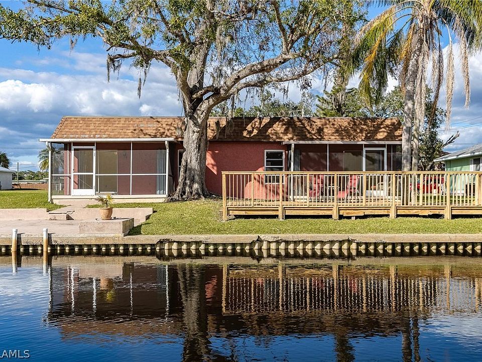 Here is an incredible opportunity to enjoy a nautical lifestyle at an affordable price. Each side of this updated duplex is 2 bedroom, 2 full baths, a 1 car garage, and private screened lanai. This would allow the owner to live on one side and enjoy the income from the other side. Or take full advantage of the income capabilities, there is no HOA. Take the boat for a 2 minute ride down the canal to the river. About a 15 minute boat ride to the Boathouse 31 and Westside Marina. At the end of your canal, go left to get to the gulf or right to get to the atlantic ocean. This extremely rare opportunity is located in the coveted Old Olga area. Schedule your private tour right away!