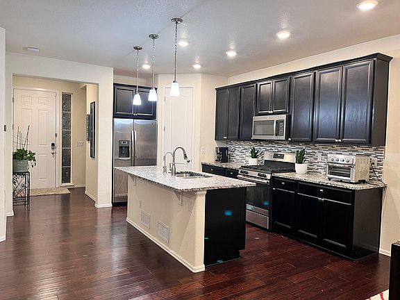 Property available in first week of Jan 2023. Only apply if you meet the minimum requirements: income of 3x the rent, no evictions/bankruptcies, 650+ credit score, no smoking. Gorgeous 2 Story in highly sought after Sierra Ridge community with 4 bedrooms, 2 Baths built in 2018. Engineered hardwood flooring with GE stainless energy efficient kitchen appliances, Granite slab countertops. Over-sized master suite with vaulted ceiling , walk-in closet and 5-piece bath. Washer and dryer in-unit and included. Full unfinished carpeted basement. Solar panels on the roof help reduce utility bills. Radon Mitigation System, Whole house humidifier, Large Stamped Concrete Patio, Smart Home with Ring Video Doorbell camera system, Dimmable Smart Lighting system in the living room included. Trash and recycling services provided. Access to Clubhouse and pool and very close to playground and park. Quick access to I25, light rail, E470, Walmart, Target, Costco, King Soopers, Rec Center, Gyms, Restaurants, Farmers Market, Parker Downtown, Walking and Trails. Smoking is not allowed. Owner pays for HOA which includes fees for trash removal, Recycle, clubhouse, swimming pool, playgrounds, basketball court, and walking trails. Tenant is responsible for all utilities (water, gas, electricity and Solar) , Snow cleaning and lawn care which includes mowing and weed control. 7 month of 19 months lease. There will be a rent increase after the first 12 months. Tenant is responsible for all utilities + solar. Owner pays for trash and recycle. No smoking, no use and/or growing of any kind of marijuana. There will be a rent increase after the first year. One pet is allowed. Pet fees apply.