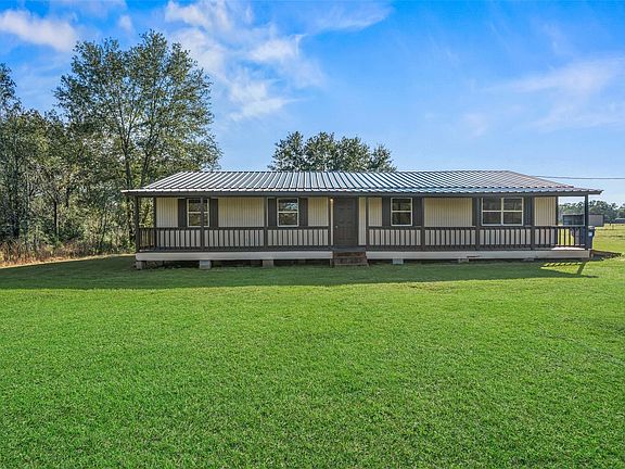 Enjoy the freedom of 5.25 unrestricted acres with a spacious four-bedroom, two-bath home set deep off the road for exceptional privacy and room to live life your way. A full-length front porch welcomes you inside to a bright, oversized living area that opens to a wide kitchen with abundant cabinets, stainless steel appliances, and plenty of space to gather. The split layout features a generous primary suite and three comfortable secondary bedrooms. An energy-efficient, durable metal roof adds long-term peace of mind. Outside, open pasture, shady trees, and fenced sections make the land ideal for animals, gardening, RVs, or future barns and workshops, and plenty of space for a home business. This is the kind of property where you can spread out, build, create, and truly thrive. **Seller is willing to sell a portion of the property.**