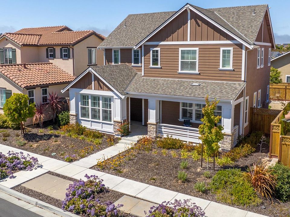 Welcome to this impeccably maintained Hartford model home located in desirable East Garrison! This home with soaring high ceilings is only 5 years old, and features many upgrades throughout. The chef's appointed kitchen boasts modern stainless steel appliances, a large granite island, 6 gas burner stove, and a large pantry. The living space downstairs is perfect for entertaining and daily life with its open floor plan that connects the dining area, living room, and kitchen. Walk up the extra wide carpeted stairs to the 4 bedrooms, 2 large bathrooms, and laundry room. The primary suite features a large soaking tub, a separate shower, and a walk-in closet. Outside there is a both a covered porch and a covered back patio for al fresco dining. The attached 2-car garage is super clean, and the back yard is fully fenced. The entrance to the garage is at the rear of the property off of a private lane. Enjoy easy access to restaurants, beaches, walking trails, schools, and the airport!