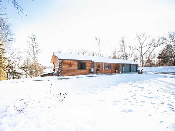 RARE FIND! 11 acres and over 330 feet of lakeshore right in Buffalo. Beautiful views in any direction. Fish right from your own dock! This home has two extra garages! Heated shop and mass storage opportunities! Great home layout with 3 beds and 2 baths, lower level is a walkout to the lake. This home has been meticulously maintained and it shows. Make memories at your new lake home!