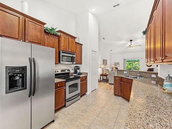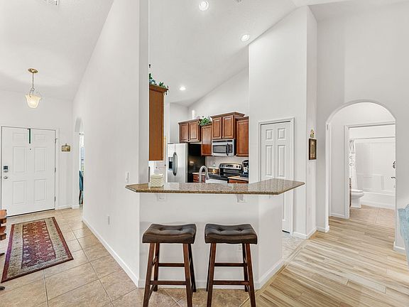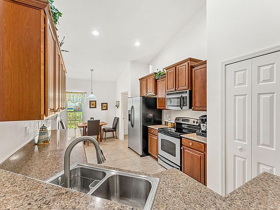 This is the one you've been waiting for! Conveniently located to Hammock Landing and award-winning dining, shopping, entertainment, I-95 and more! Zoned for top schools, this home boasts safe and secure CBS block construction, a new roof (2023), new HVAC (2022), and storm shutters, ensuring comfort, security for your family, and cheap insurance and utility bills too. The open kitchen features granite counters, SS appliances, and elegant hardwood cabinets, and a breakfast bar into the main living room--perfect for entertaining! Savor morning coffee on your serene, screened back porch with natural privacy from the nature preserve, custom roll-down shades and a picturesque peek of the pond. With 16x16 tile flooring in the main areas is elegant and durable. Pride of ownership shines throughout, and the living spaces flow effortlessly, creating a welcoming atmosphere for all. 20 minutes to the beach or 1 hour to Orlando attractions! You don't want to miss this one!