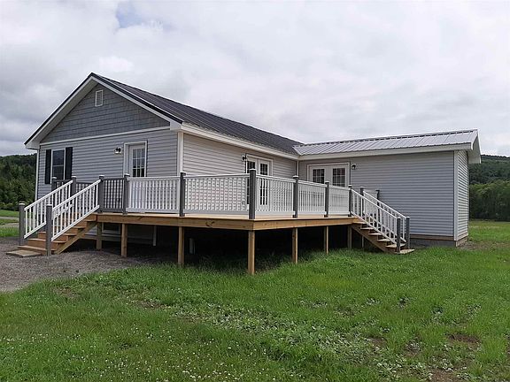 NOT OFTEN THAT A BRAND NEW CONSTRUCTION IS AVAILABLE IN PITTSBURG! This new ranch is just being completed so you have nothing left to do but move in with your furniture. Interior is done with beautiful shiny oak floors flowing thru the huge living room, dining area, hallway and 3 bedrooms. Bright open floor plan, sunlight beaming in. Open space that will allow for easy placement of furniture. Modern kitchen has nice gray tile, lots of white cabinets and black counter top. New SS appliances are in. Double door in kitchen and living room onto pressure treated deck that wraps to side entrance. 3/4 bath has corner glass shower, washer & dryer, modern sink vanity. Master bedroom has it's private bath with full tub and double sink vanity, & tiled back splash. The wonderful huge deck is completed. Two car garage has just been sided and doors installed. It is all ready for you! The septic is a 3 bedroom design with oversize 1500 gal tank, drilled well, 1000 gal propane tank you own allowing for filling at best price, underground utilities. This all sets on a 5+ acre lot that has been manicured for the last 10 years prior to construction of this new home. The lawn is already lush green, a mature of hedgerow along the front at the road and sides of property. Home is positioned away from the road & accessed by a well constructed gravel driveway. ATV access, snowmobile trails close-by, in your backyard is Hall Stream. You can't duplicate this home & property for this price!