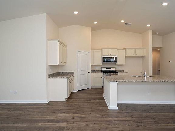 Lovely, low maintenance, paired ranch home in a new phase natural gas community where homeowners will enjoy a spacious clubhouse with sprawling verandas, impressive swimming pool, conditioned fitness center, fenced dog park, playground area, and blueberry garden! This Tuscan floorplan offers a spacious, open layout all on a single level. With vaulted ceilings, tons of natural light throughout the living and dining areas, large kitchen island with breakfast bar, and spacious covered porch, this home is perfect for entertaining! The kitchen also features granite countertops, stainless Whirlpool appliances, 36" cabinetry, and a large pantry with ample storage. Roomy primary bedroom suite with walk-in closet and private bath with dual vanity and 5 ft. walk-in shower. This home also features laminate wood flooring throughout the main living areas, a tankless gas water heater and our industry leading smart home technology package. Yard and exterior maintenance are all covered! 4' black aluminum fencing is permitted (per HOA approval). *Photos are of a similar Tuscan home. (Home and community information, including pricing, included features, terms, availability and amenities, are subject to change prior to sale at any time without notice or obligation. Square footages are approximate. Pictures, photographs, colors, features, and sizes are for illustration purposes only and will vary from the homes as built. Equal housing opportunity builder.)