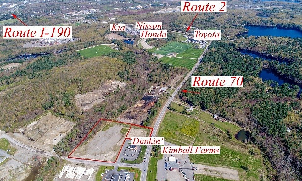High visibility, high traffic location. Surrounded by Mass Youth Soccer Fields, abutting Dunkin' Donuts, across the street from Kimball Farms Ice Cream, near 4 automobile dealerships, this premier location is ideal for auto dealership, restaurant, retail, or recreation.