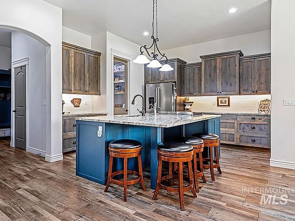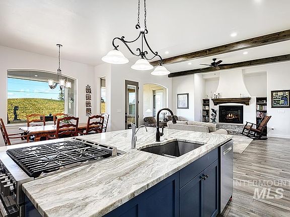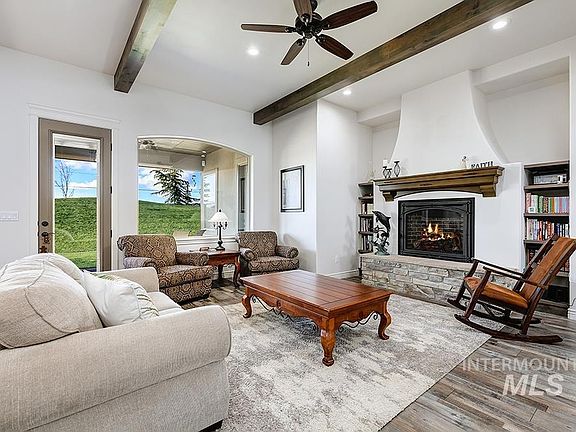 An exquisite, timeless single level residence within the premier Legacy community. This custom designed & built residence offers a one-of-a-kind, flexible floorplan well-suited for multi-generational living plus a magnificent ~1630sf garage with RV bay. The layout creates a home of everyday comfort & privacy, with three distinct bedroom wings accompanied by a den, office, & spacious great room concept. Every surface was thoughtfully selected with quality & functionality in mind, including beautiful glass pocket doors, arched entryways, & custom cabinetry. The great room features a stunning Santa Barbara-inspired fireplace flanked by built-in bookshelves & adorned with a hearty chair-height hearth & robust wood mantel & beams. Durable LVP floors flow into the gourmet kitchen, where extra deep 16" cabinets comfortably store kitchenware, richly veined Dolomite granite countertops glow beneath LED under-mount lighting, & stainless steel appliances are perfectly placed for the chef to intermingle with guests.