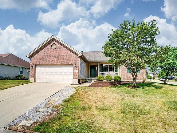 SPACIOUS OPEN CONCEPT RANCH WITH HUGE UNFINISHED BASEMENT. COVERED FRONT PORCH WELCOMES YOU AND YOUR GUEST INTO AN ENTRY THAT OPENS TO THE LARGE GREAT ROOM WITH CATHEDRAL CEILING AND GAS FIREPLACE. This area is also open to the dining room(could be used as office), kitchen, and nice sized breakfast area. Two full baths and a Split bedroom plan with Master also featuring a cathedral ceiling. All New Carpet throughout and all rooms are freshly painted. Handy main floor laundry and 4 ceiling fans. Two car garage and large deck off breakfast area. This is great area and within 10 minutes to Wright Patt AFB, Wright State U., shopping, restaurants, and I675. Washer, dryer, and water softener convey but not warranted.