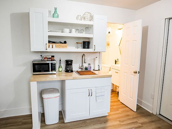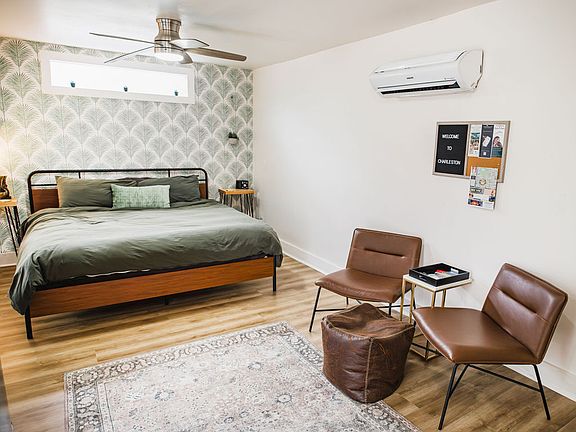 This cozy, renovated studio is thoughtfully designed for comfort and convenience. The open-concept space features a king-sized bed, two comfortable chairs, and a 50" smart TV perfect for relaxing after a day of work or exploring.