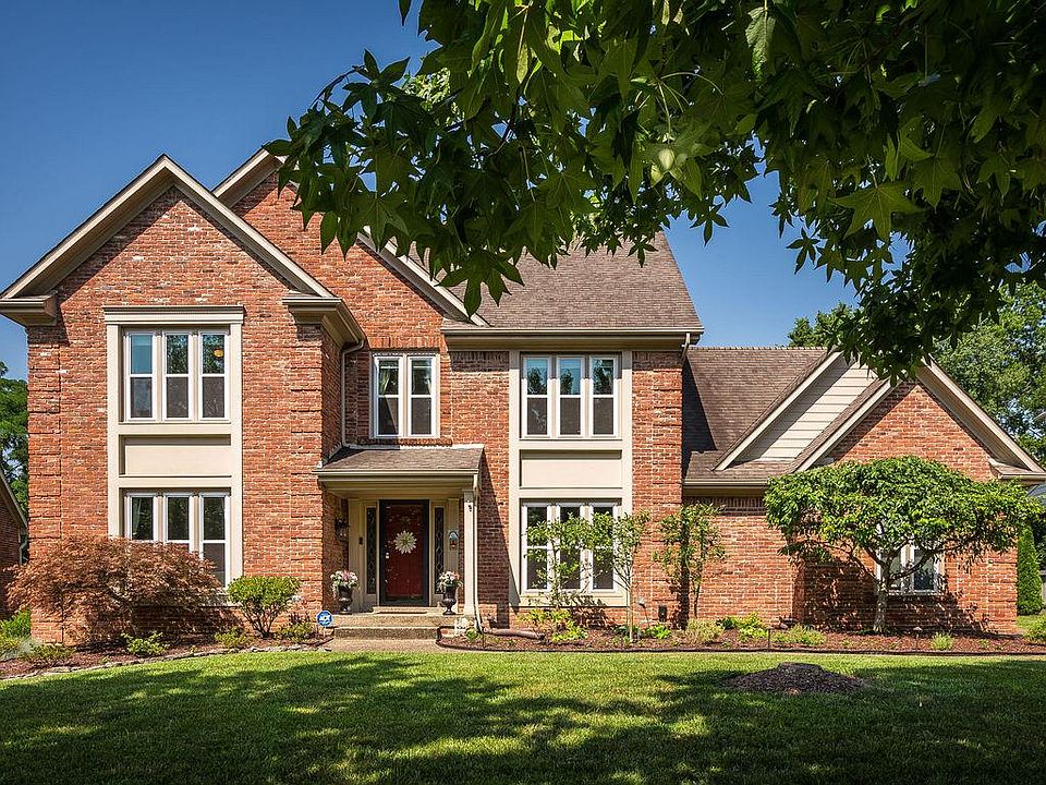 Great new listing in the sought after neighborhood of Owl Creek. This home has over 4,200 square feet of finished living space and backs up to woods to add the privacy and luxury of a hard to find gem in this neighborhood. Upon entering you will notice the beautiful hand painted murals on the entryway and hallway walls, painted by Sandy Kimura who is a local Louisville artist, and hardwood floors with mahogany trim, and The hardwood floors carry through the dining room and the kitchen. The dining room has plenty of room for a large gathering and is right off of the kitchen The kitchen has granite countertops, stainless steel appliances, and travertine back splash. The kitchen has an additional eating area with a vaulted ceiling and and entrance to the newly painted second story deck that