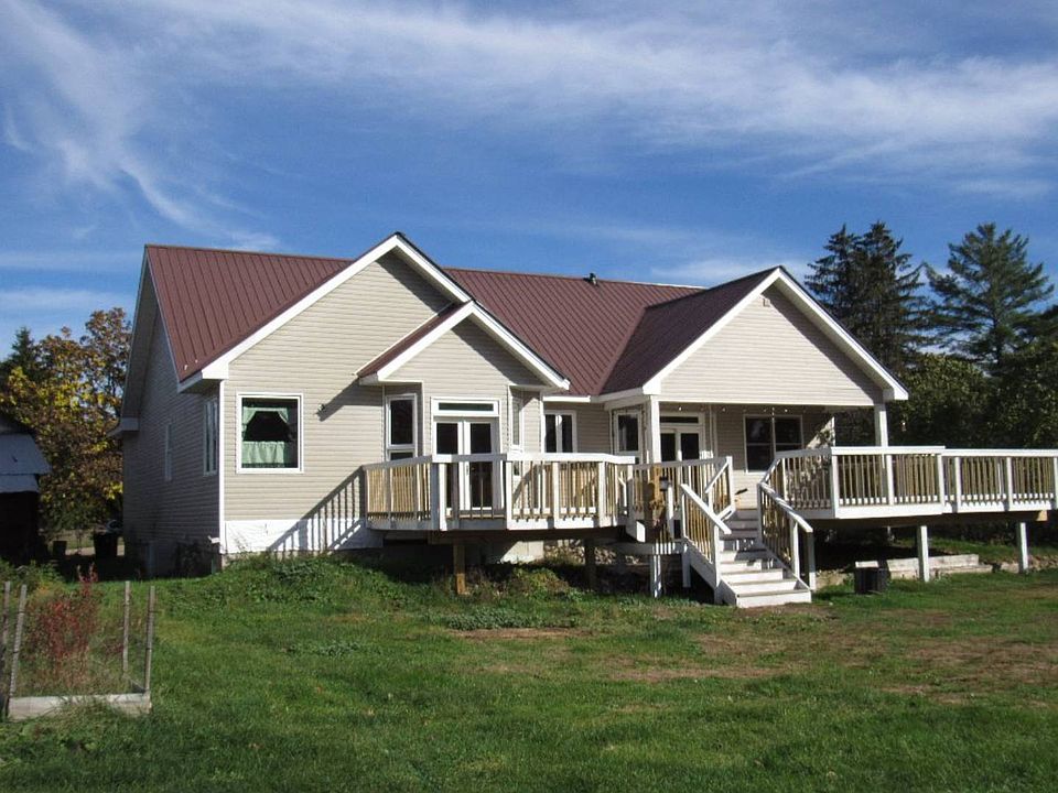 You'll love this charming ranch home with 3 bedrooms, 2 baths, large eat in kitchen, and spacious living room with a pellet fireplace. There is a large deck off the kitchen and a separate deck off the master bedroom with stunning views of the mountains.The master bedroom has a large walk-in closet and a private bath with a shower,Jacuzzi tub and his/her sinks. There is an attached garage with a mud/laundry room as you enter the home from the garage.The basement is partially finished with lots of room to add more living space.Includes a large barn for extra storage. The property has a wonderful large backyard and is bordered by Elbow Creek. There is a fenced in area and a small horse barn for horses down in back. This home was built in 2010 and sits on 3.5 acres! This home is located at 1497 State Route 30 in the town of Wells and is only a short walk to the town beach,and easy access to the snowmobile trails.