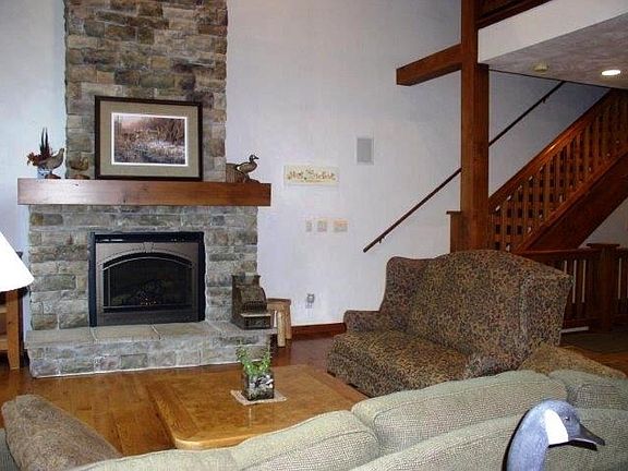 BEAUTIFUL CONDO WITH BOAT SLIP ON LITTLE MUSKIE with all of the extras. This designer inspired condo has 3 bedrooms & 3 baths, in floor radiant heat in condo & garage, 1st floor laundry, pantry, beveled granite counter tops, custom hickory flooring, stainless appliances, and cherry wood cabinetry. The kitchen features built in ovens, gas grill top stove, double drawer dishwasher, disposal and center island. Cathedral ceilings grace the open dining and living room.