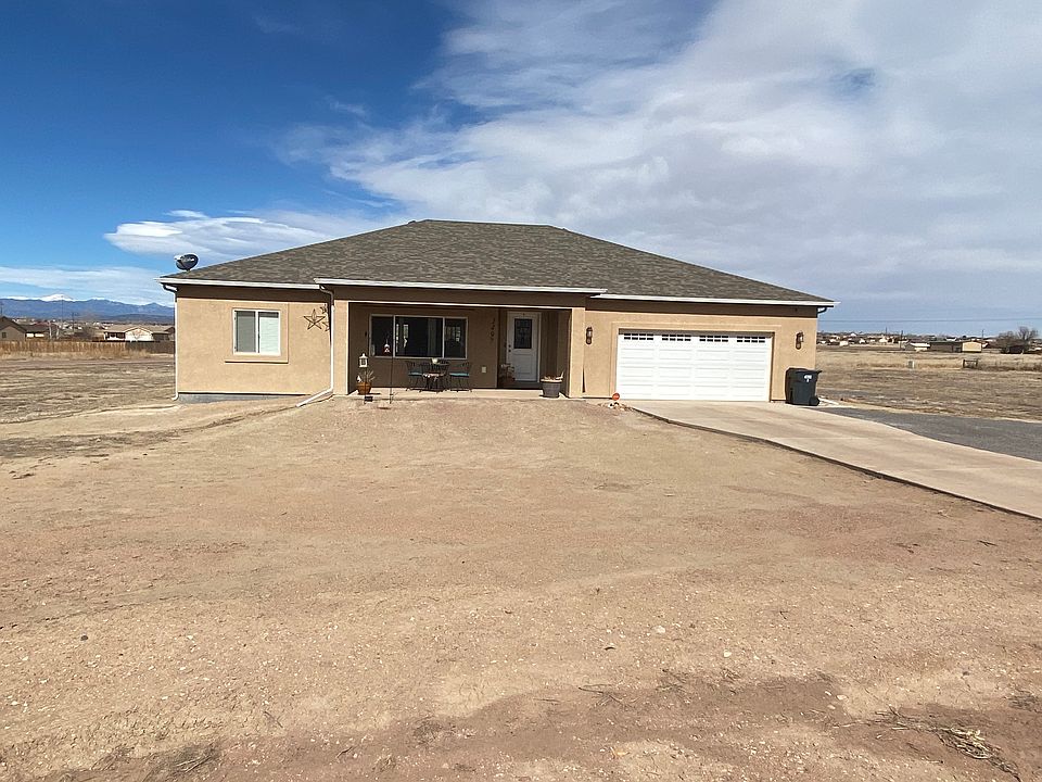 Beautiful ranch property located in the Pueblo West community. You will fall in love with the open layout of this home. There is lots of natural light that comes through and accentuates the vaulted ceilings throughout the home. The kitchen features granite countertops and stainless steel appliances. There is lots of room for entertaining and enjoying meals with loved ones. There are 3 bedrooms and 2 full bathrooms located on the main level. There are ceiling fans throughout the home to keeps things cool in addition to the central A/C unit. This home has a large backyard that is completely fenced in. The 2 car attached garage is a huge plus during the winter months.