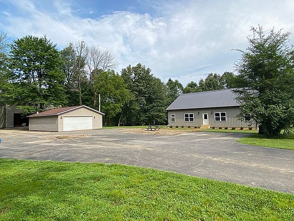 Secluded, new construction with metal siding finished in 2019. 2500 sq ft home features open floor plan with 16’ vaulted, carsiding ceiling and recessed lights on dimmer switches in main living space/kitchen. 10’ walls throughout. Four bedrooms all with walk-in closets. Master suite includes huge walk-in closet with built-in shelving. Master bathroom includes large walk-in tile shower with rainfall shower head. The additional bathroom has toilet/shower space separate from vanity space. Great for kids. Large walk-in pantry with motion sensor light and plenty of shelving. Large laundry room off the back door with counter top space attached to 1/2 bath with work sink. Custom built doors. Outdoors includes a long, secluded, paved circle driveway. Detached, insulated two-car garage and 40x80 shop with 16’ ceiling and concrete floor with 220 volt breaker box. Entire shop wired with outlet on every post and plenty of lighting. 12x24 livestock shed with 4 acres of fenced pasture. Creek through the property and pond. Mature trees with great yard and woods. Built-in sandbox and designated kid’s playground area. Additional parking area for large equipment at the front of property with culvert. Surveillance system. 20 minutes from Marion or Harrisburg. Please call Kyle at 618-335-0722 or Bridget at 618-339-8356