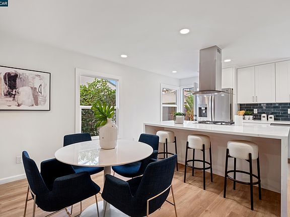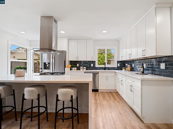 Step inside this beautifully updated San Leandro home offering 3 bedrooms and 2 stylishly renovated bathrooms in the main house. Newly painted inside and out, and recently updated with new flooring, lighting, + much more! This home features a light-filled living room with cozy fireplace that flows into the dining area and stunning kitchen. The kitchen is designed for both cooking and entertaining, complete with white shaker cabinets, a statement blue tile backsplash, stainless steel appliances, a floating hood, and a gas range for every culinary delight. The expansive quartz waterfall island doubles as a breakfast bar for casual seating. Unwind in either spa-like bathroom, choose from a walk-in shower or luxuriate in the tub. The generous bedrooms provide comfort and flexibility for your needs. Step outside and find inviting yards with mature fruit trees, garden beds ready for planting, a private well, and a serene seating area. This home also includes a 630 SF detached ADU with a flexible 4th bedroom, 3rd full bath, living area, and office, perfect for extended family, guests, or rental income. Located near Lake Chabot, parks, shopping, dining, commuter routes and transit, this home blends modern style with everyday functionality. Come experience all this San Leandro gem offers.