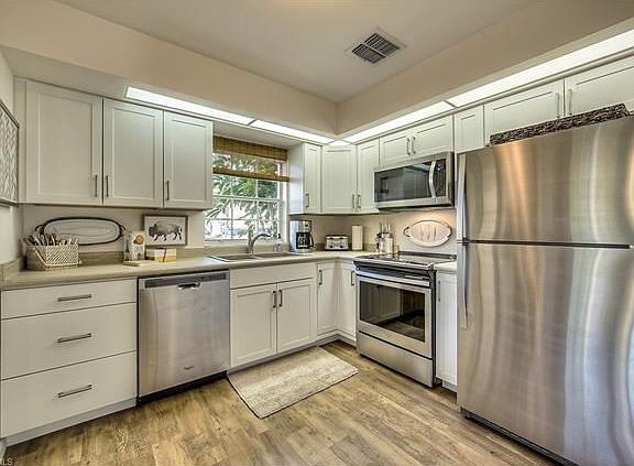 Totally renovated 3 bedroom, 2 bath fully furnished condominium with golf course views! This unit is appointed with tasteful new furnishings and decor. Upgrades include new kitchen cabinets, floors and stainless steel appliances. All 3 bedrooms and living room include flat screen HD TVs. Enjoy amazing views of the golf course and well manicured landscaping on either the glassed enclosed lanai or open exterior lanai featuring a gas grill. Amenities include community swimming pool within walking distance from unit along with a bike and jog path. Gulf Harbour Yacht & Country Club is ideally located with convenient access to Ft. Myers Beach, Sanibel & Captiva Islands as well as shopping and dining. Community is safety oriented with security patrols and a guard at the gate. Beautiful well maintained neighborhood with lots to offer.
