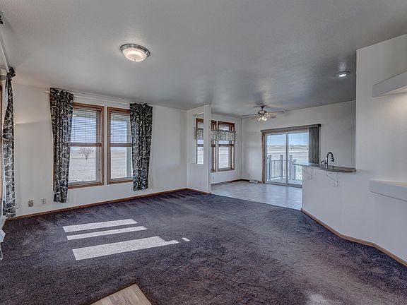 Amazing views. Enjoy sunrises to from the front porch and beautiful sunsets over the Black Hills from your deck in the evenings. This well cared for 2004 modular home features large 3 car garage 3 bedrooms 2 bath and an office. Large master suite with walk-in closet, and extra large bath. The open floorplan provides expansive space in the living, dining, and kitchen, with access to the deck for the enjoyment of your outdoor entertainment, and relaxation. The large fully insulated and heated shop has a separate living or whatever you can imagine and 1/2 bathroom area, pellet stove, and electric heat. Windows were updated in 2021. The home also has water softener, on demand water heater, a private well and septic system.