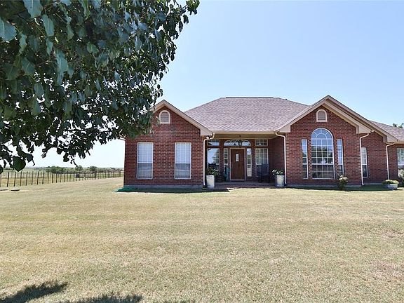 Stunning home, turnkey property sits on a hill overlooking larger ranches and is located from a short distance to both Denton and Decatur.As you enter this beautiful home, you will notice the beautiful floors and the stunning high ceilings.Incredible chef kitchen,lrg farmer sink,and huge island that opens towards the living room and view that opens to the horse barn and pastures.Equestrian improvements are built to perfection, consist of a 6stall show barn with a tack room, fly system and wash area,8 covered pipe runs with automatic waters, 3 turnout pastures with sheds. Custom construction 60ft round pen. Must come see before it is gone!