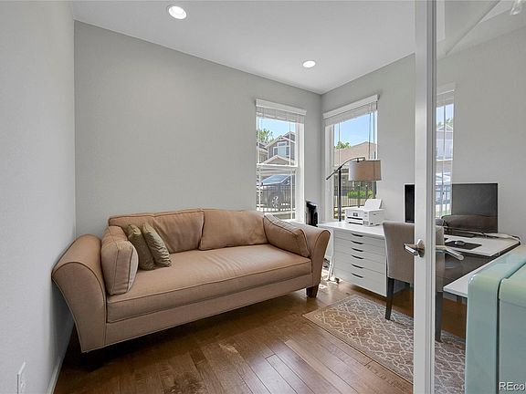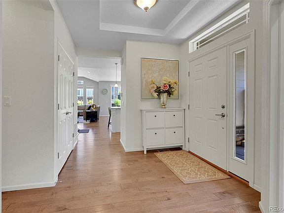 Luxury Townhome living at its finest. Welcome to Crestridge Place and Pioneer Hills. The Location speaks for itself with the community being nestled up against the Cherry Creek State Park, Cherry Creek Schools. This Unique Ranch Floor Plan does not come up for sale often as there are only a few in the whole community and in addition to that its a Full Finished Basement. Once you walk in you will feel how well designed this floor plan is with a Spacious and Raised Ceiling in the Family Room that opens into the Dining Room and Kitchen as well, and makes for an Entertainers dream! Of course you are always welcome to step outside the dining area and enjoy the patio space on the Green Belt! The Cozy Family Room has Hardwood Throughout. If you love to cook, you will love this kitchen, all Stainless appliances, Gas Range, Refrigerator, and Dishwasher all included. With the darker floors and the White Maple cabinets the Granite really pops! The whole home was designed for ADA, with wider doorways and removable cabinets. The Primary Suite features a coffered ceiling, Resort Doors in both the bedroom and at the Primary walk in closet. The Primary bath has an enormous shower with seat, quartz counters and is light and bright!! As you venture downstairs you will see the latest addition to the home, which is a Full Finished Basement with Wet Bar with lots of light and lots of Windows. Equipped with a Bedroom and bathroom as well. There is plenty of storage left in the basement to store your belongings. This is truly one of a kind, with all of your shopping needs at an arms distance!! Don't miss your chance to own this Home!