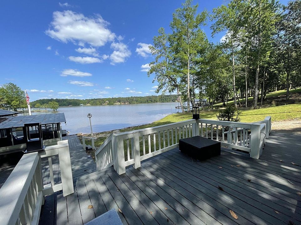 Don't just drive by, you will miss a great home. Over 2 acres on Gant lake with a beautiful view of the main lake!, and full lake views across the back of the house from french doors. So much has been remodeled in this beautiful home like, New flooring, Paint, Granite countertops and New Kitchen and Stainless Steel Appliances, Updated Bathroom, New Lighting and New hardware!. Private Master suite and Huge metal Barn. Decks Galore! The Deck runs full length of back of house stairway with patios all the way to the water's edge, enough dock space for giant family reunions and a Dock apartment which features a full kitchen and bathroom. Perfect for Guest to stay! Screened porch and deck area adjoin the boat house where your pontoon boat awaits. 3 Boat stalls and a jet ski spot and fish cleaning station.Other features are you can drive down to the boat house on a golf cart and enjoy some fishing, skiing fireworks and a nice BBQ with the family!