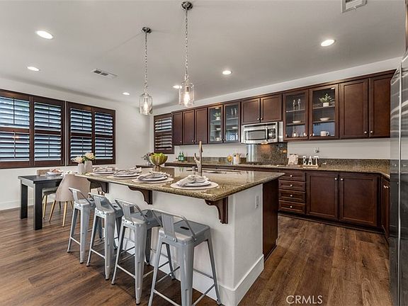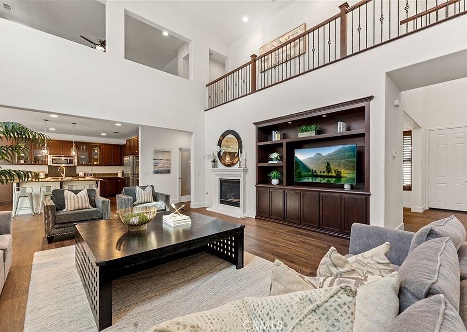 Just minutes beyond the OC and LA county lines is this beautiful, move-in ready, 3700 sqft, 5 bedroom (with the primary suite on the first floor and a junior suite upstairs!), 4 bathroom home in the Avonlea community in Eastvale. This fabulous floor plan and features will check a lot of boxes on the wish list for your next home. As you enter the home, you'll see the formal dining room to the right, the office (which could be a 6th bedroom) and full bathroom to the left. The staircase with stylish iron balusters frames your entry to the living/entertainment room with stunningly high ceilings and lots of natural light. The open concept living area flows into the kitchen and casual dining space (a little more than "casual" since it will fit a full size dining table). The kitchen with its center island and granite counter tops delivers so much counter and cabinet space, as well as a very large walk-in pantry. Tucked into a private wing of the home is the main floor primary suite and bathroom with dual vanities, deep tub, separate shower, and yours-and-mine walk-in closets. The main floor - with no interior steps anywhere - also has bedroom #2 and the laundry room with wash sink and direct access to the 3-car garage. Upstairs is a secondary bedroom suite, two more bedrooms, a full bathroom, and a loft/bonus room with a multitude of uses. Open floor plan. High ceilings. Recessed lights. Ceiling fans in every bedroom. Split-tilt plantation shutters and Gorgeous luxury vinyl flooring throughout. Dual-zoned A/C. Low-maintenance, water-saving landscaping with pavers and turf in front and back. Lovely community with a small park at the end of the block, plus the spacious Avonlea Park just around the corner with a playground, bbq, and half-basketball courts for use by Avonlea residents only. Centrally located to the 91, 15, 71, and 60, close to shopping, restaurants and more. Too many words and they don't do it justice. See the photos and the floor plan (video loading soon) and then you really need to see it in person. It's a great house!