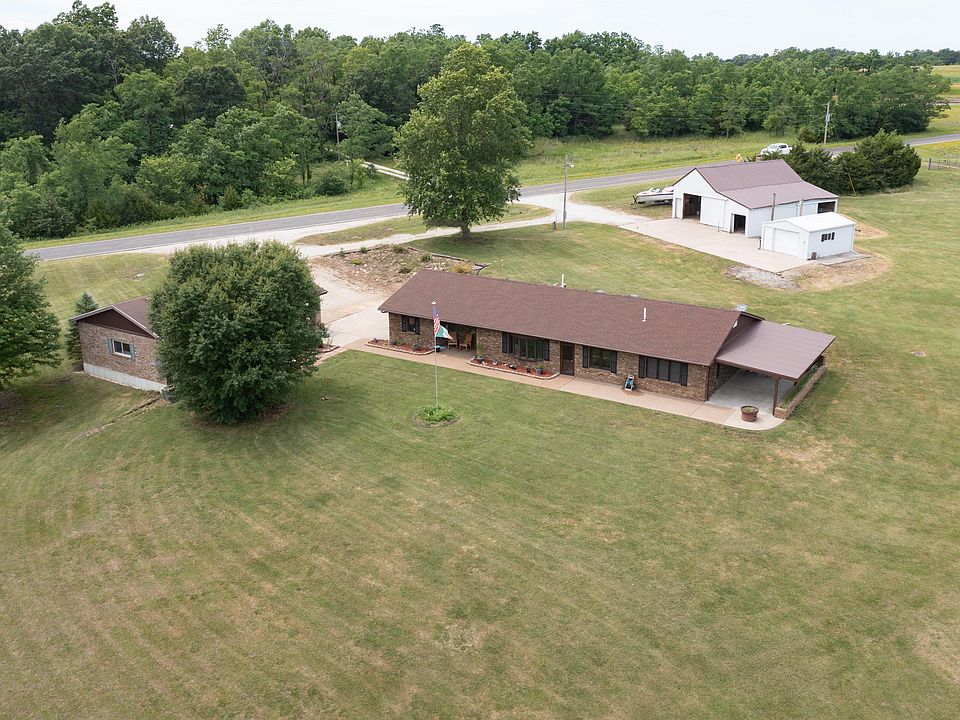 Custom Built Maintenance Free Brick 2 BR, 2 BA Home on 3 Secluded Acres on Blacktop Minutes from Long Branch or Thomas Hill Lake!! Quality Constructed Home with Open Floor Plan - Fiber for Internet -New Thermo Seal Windows & Doors in 2016 - Spacious Primary BR & BA - Skylights in Kitchen/Dining Room - Oversized 2 Car Attached Garage - Covered Concrete Patio Overlooking Fields - Detached Finished 28' x 38' Brick Building Great for Family Gatherings, Game Room, Mother In Law Quarters, Etc. - Plenty of Storage for Boats, Trucks & Shop Area 33' x 40' Outbuilding with Concrete Floor & Outside Pad - 12' x 40' Lean To - Additional 16' x 20' Outbuilding - Call Today!!