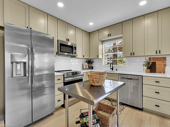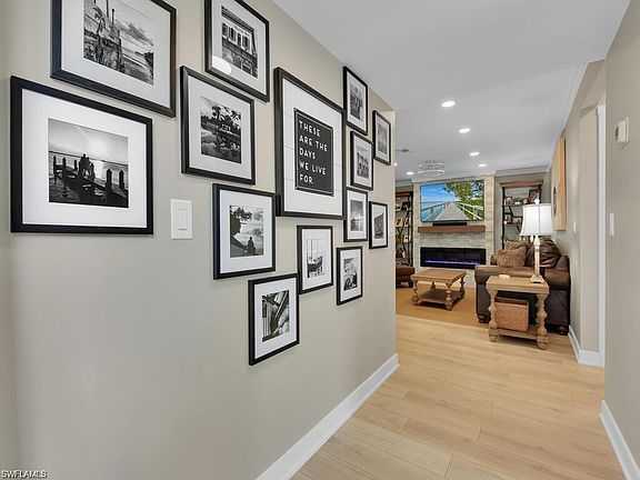 Gulf Harbour Yacht & Country Club is in a great location in South Fort Myers, just minutes away from Sanibel, Captiva, and Fort Myers Beach. This newly remodeled condo feels very spacious, with a size that seems over 1300 square feet, due to the enclosed patio opening up to the kitchen and living room, creating a seamless and open living space with matching tile. Being offered TURNKEY, making it ideal for both seasonal and full-time residents. The stunning renovation boasts high-end fixtures, new appliances, exquisite flooring, modern hardware, an electric remote-controlled fireplace, contemporary-style vanities, and designer mirrors & cabinetry. Located on the first floor, this condo is situated on a sparkling lake overlooking the golf course. It features a great room and split bedroom floor plan, allowing for ample natural lighting. The glass fireplace makes the living room inviting, while the stylish kitchen offers custom gray cabinets, high-end appliances, and attractive countertops. Additional features include a screened lanai and an open lanai, providing space for the grill and outdoor dining. Amenities include a golf course, boat slips, country club dining, fitness center, swimming, tennis, and much more! Don't miss out on this exceptional opportunity to experience an active lifestyle in a social country club community. Contact us today to schedule a showing!