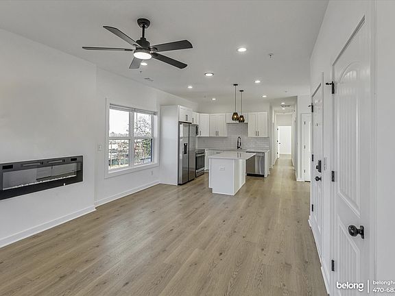 This newly constructed triplex unit has been thoughtfully designed for modern living. Located in the charming Sylvan Hills neighborhood and spanning 1,350 square feet, this lovely abode offers 3 generously sized bedrooms and 2 elegantly appointed bathrooms. The open-concept living area creates a harmonious flow between spaces, ideal for entertaining or quiet evenings. A well-equipped kitchen takes center stage, featuring pristine white shaker-style cabinetry, a classic white subway tile backsplash, and sleek black fixtures. Premium stainless steel appliances, including a dishwasher, microwave, 4-burner electric range, oven, and refrigerator, complete this culinary haven. With central heating and cooling ensuring comfort throughout the year, this home is as practical as it is inviting. Laundry hookups and 4 dedicated off-street parking spaces add a layer of convenience that complements its thoughtful design. Every detail has been carefully considered to offer both beauty and ease of living. Located near the Atlanta Beltline and within easy reach of MARTA, schools, and an array of shopping destinations, this home offers the best of urban connectivity and suburban charm. Sylvan Hills, known for its rich history and close-knit community, provides a picturesque backdrop for daily life, combining modern convenience with timeless appeal. *Our homes come as-is with all essentials in working order. Want upgrades? Request it through the Belong app, and our trusted pros will take care of the rest!