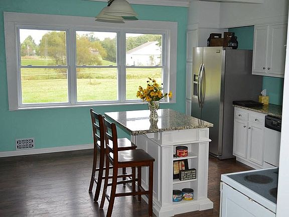 10 minutes from town, but still in the country. 3 bedrooms, 2 baths country home. 12x40 covered front porch. Covered back porch. Has its own well..NO WATER BILLS! 2 1/2 car detached garage. 30x40 barn with lofted storage.