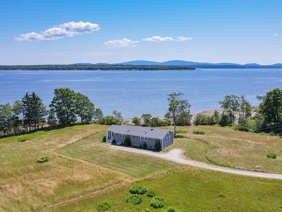 The home is being offered with two adjoining lots with total frontage on Union River Bay of 760 feet. Dramatic views of the Mountains of Acadia National Park all on 11.90 acres of open fields. The cottage-ranch style home provides an open layout with large windows, natural light and breathtaking views of the bay and Acadia National Park. The living room features comfortable seating and access to the outdoor deck and three season sunroom. Along with a modern kitchen featuring clean designs and stainless steel appliances. Two full baths and 3 bedrooms provide views and serenity. First floor living with laundry on the first floor and office available. Enjoy the freshness of the sea breezes. Fiber internet available. This listing can be combined and purchase with MLS 1642827 with 46.8 acres and 1,353 feet of shore frontage.
