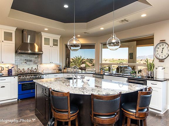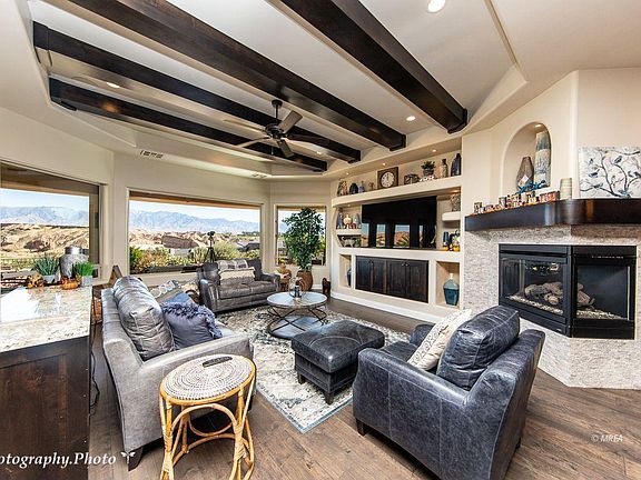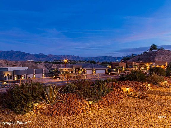 ONE OF A KIND UNIQUELY DESIGNED CUSTOM HOME! A Dave Maves Masterpiece! Located in the upscale community of Bella Horizon at the top of Mesquite. This home definitely has the WOW factor everyone will be talking about! Your Own Resort Backyard with Stunning Views of Wolf Creek and the Virgin Mountains. No need to travel anywhere. Vacation is home. Picture perfect...from the moment you enter the elegant front courtyard and open-air turret. Once you walk through the Iron-Clad Entry Doors you are welcomed to a beautifully upgraded and appointed interior. This home embodies the best that Mesquite has to offer in the way of indoor/outdoor living, combining interior and exterior features found in very few homes. With 2,911 sq ft of custom detail this home has a Guest Casita and so many upgrades you need to see it in person. Gourmet kitchen with 6 burner Celebrity Chef Blue Star LP Range and a Miele Com-bi-Steam Oven with large Walk-In Pantry. The pass through to the outdoor kitchen is a great feature. Huge 3 car garage at 1,103 sq ft. Relax in your own Oasis with Luxury Swim/Spa while enjoying the peace, quiet and views. Will make you feel like you are on a PERMANENT VACATION.
