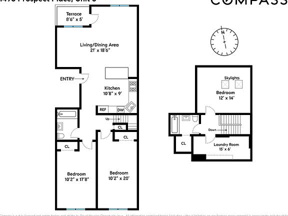 Pending Application 12/23/2020 If you're craving space, look no further than this top floor duplex! With over 1500 square feet spanning two floors, this 3 bedroom/2 bath apartment is the definition of sprawling. It's 17 foot ceilings are found throughout, adding a dramatic spaciousness to the already generously sized rooms. The private landing offers a handy option for bike and shoe storage right outside your front door. Welcoming you inside is a large open-concept kitchen complete with abundant cabinet and counter space, all new appliances and granite countertops that overlook a 21 foot wide living area. For added charm, you'll find a perfectly sized dining nook and a balcony conducive to relaxing and breathing in the fresh air. The bedrooms are conveniently located on the opposite end of the apartment, each one equitable in size and featuring the same 17 foot ceilings found throughout the duplex. Upstairs you'll find the third bedroom, complete with a skylight, a full bathroom and a separate laundry room. With natural light pouring through its windows, this Crown Heights gem checks every box. Schedule a viewing today! Cats Only.