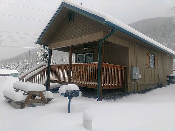 215 ft. on Jonathan Creek (Maggie Valley's largest creek). Two cabins on property now, with potential to add several more. Large covered deck overlooking the creek.