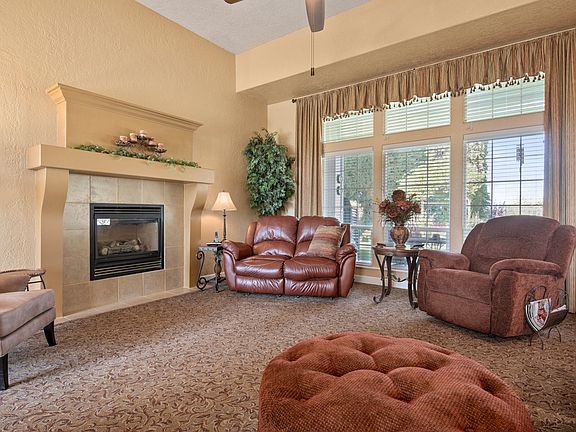 Outstanding custom home on large, picturesque landscaped corner lot bordering common area & agricultural field for privacy. Beautifully situated across from the Purple Sage Golf Course. 1,500 sf court yard w/amazing landscaping and seating area. Replaced all flooring on main level in late 2016. Exterior replacement of roof and gutters and paint in the summer of 2016. Spacious great room w/custom fireplace. Private master w/dual sinks, vanity, his/her closets. 9' to 14' ceilings throughout. Utility w/sink. Tons of storage throughout. Charming 4th bedroom/bonus room w/skylights and 1/2 bath. Gas heat, water heater and range. Central air, and automatic sprinkler system.