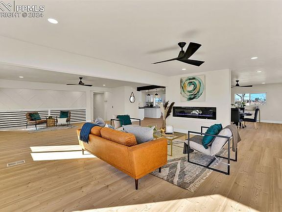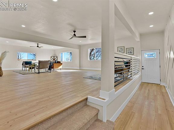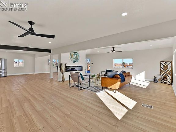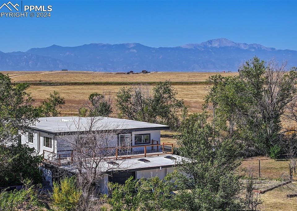 Imagine waking up each morning to the quiet serenity of nearly 10 acres, with incredible views of Pikes Peak and the area from every window. Mature trees thoughtfully placed and plenty of room for gardening with a raised bed and fenced areas. This fully remodeled 6-bedroom, 4-bathroom ranch-style home isn’t just a place to live, it’s a retreat designed to elevate your lifestyle. Step inside and feel the warmth of natural light pouring through into the expansive great room with a fireplace, accent wall and tall ceilings that create a sense of calm and spaciousness. The kitchen, invites you to cook, gather, and connect with family and friends. With its gas range, oversized pantry, and thoughtful updates, you’ll look forward to every moment spent here. Every inch of this home has been designed for comfort and convenience, from the three laundry areas to the large updated bathrooms, ensuring modern living without compromise. Outside, your options are limitless, host summer evenings on the rooftop deck, explore the fully fenced acreage, or simply relax enjoying the peaceful surroundings. There is even a hidden root cellar inside the home, perfect for storing, canning or whatever you can imagine. Located minutes from Schriever Space Force Base and Powers Blvd, this home gives you the best of both worlds: the quiet, peaceful retreat you crave, with easy access to city amenities when you need them. This is your chance to experience a life where every detail has been carefully crafted to bring you peace, comfort, and joy. Are you ready to see it for yourself? Schedule your private tour today, your next chapter starts here.