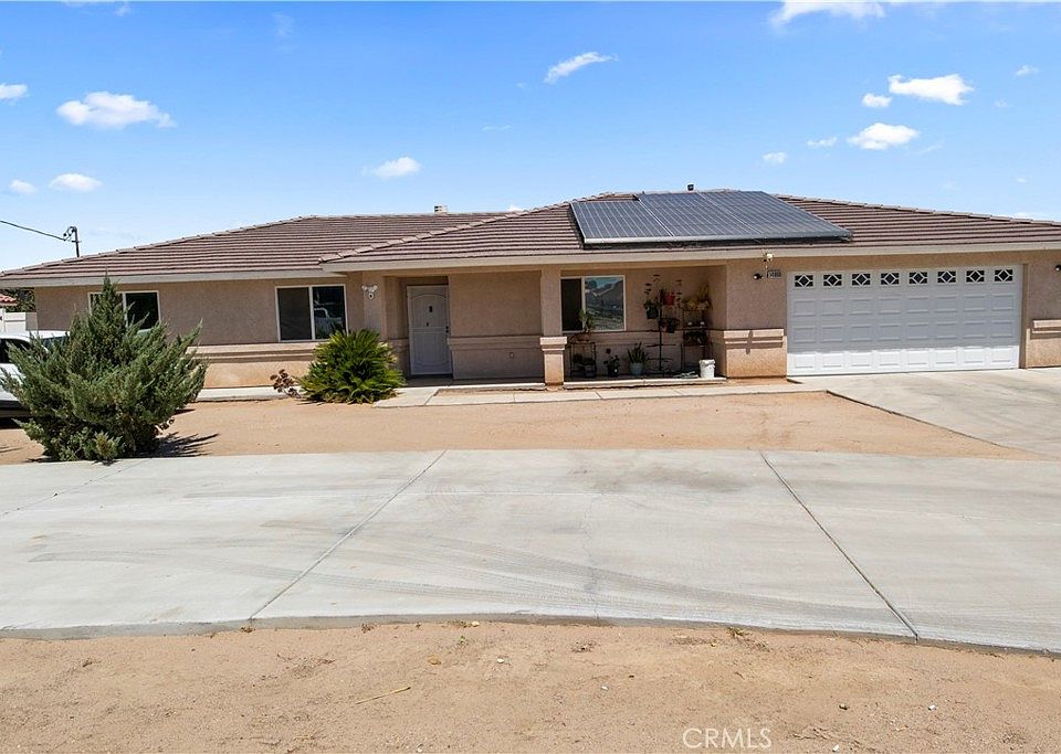 Large one story home being offered for sale to new owners who are looking for value, convenience, and a delightful place to call home. This home features tile and/or hardwood floors in every room. Large and convenient, 4 bedrooms with a split floor plan and new light fixtures. The home also offers two full bathrooms each with shower/tub combo. The principal bathroom has double sinks. This home features solar panels and window shutters in every room for energy efficiency. There is room for two cars in the garage, a side gate to park more in the back and also a few in the front yard. A circular driveway adds convenience and curb appeal. The back yard has a chainlink fence featuring a vinyl fence in front of it. The front has wrought iron fence and gates for safety and privacy. This home was built with a tile roof that provides cover and great looks as well. The kitchen is fully equipped with a gas freestanding range, dishwasher, and a stainless steel fridge. Recessed lights create the perfect ambiance for the chef of the house. The laundry room off the side of the kitchen is equipped with a washer and dryer.